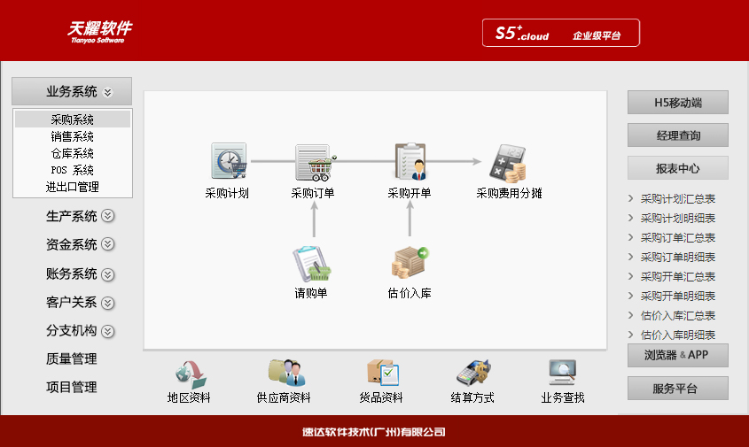 《天耀S5+.cloud》是速達軟件公司最新推出的平臺化企業(yè)管理應用系統(tǒng)。支持云部署和桌面服務器部署及APP部署,高度滿足企業(yè)應用平臺化的需求,實現(xiàn)了跨平臺部署應用,大大提升了應用效率和安全性。平臺化產品融入了企業(yè)經營管理和辦公管理思想,提高了企業(yè)運營質量,系統(tǒng)有效的將龐大的供應鏈業(yè)務管理和OA企業(yè)辦公同置于《天耀S5+.cloud》平臺。同時平臺支持瀏覽器端(B/S)、桌面端(C/S)、移動應用(APP)等多種應用模式,真正滿足企業(yè)管理和OA辦公的個性化需求,全面提升企業(yè)綜合管理能力。