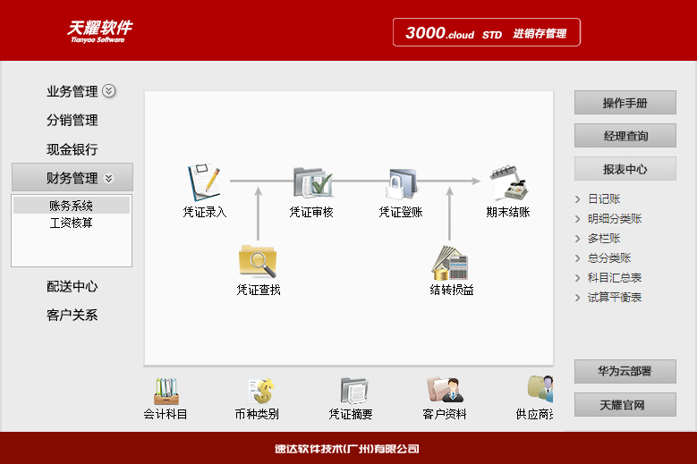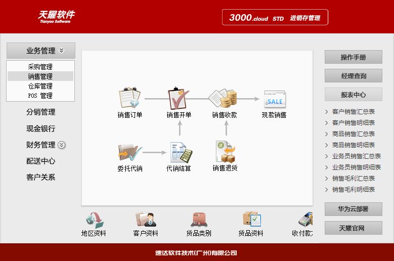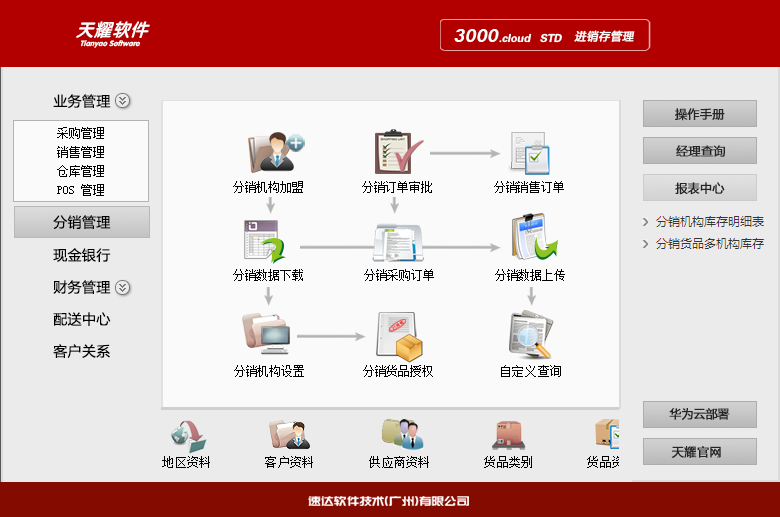 《天耀3000.cloud-STD 》集進(jìn)銷存、POS、財(cái)務(wù)、CRM為一體的中小企業(yè)管理軟件。軟件支持云部署 和桌面服務(wù)器部署及APP部署,高度滿足企業(yè)應(yīng)用需求,大大提升了應(yīng)用效率和安全性。 軟件支持局域網(wǎng)/互聯(lián)網(wǎng)多用戶應(yīng)用,實(shí)現(xiàn)異地多機(jī)構(gòu)、多店面、多倉(cāng)庫(kù)等遠(yuǎn)程應(yīng)用,支持APP移動(dòng)端 應(yīng)用,數(shù)據(jù)實(shí)時(shí)同步,安全、穩(wěn)定、高效、易維護(hù),特別適合中小企業(yè)使用。