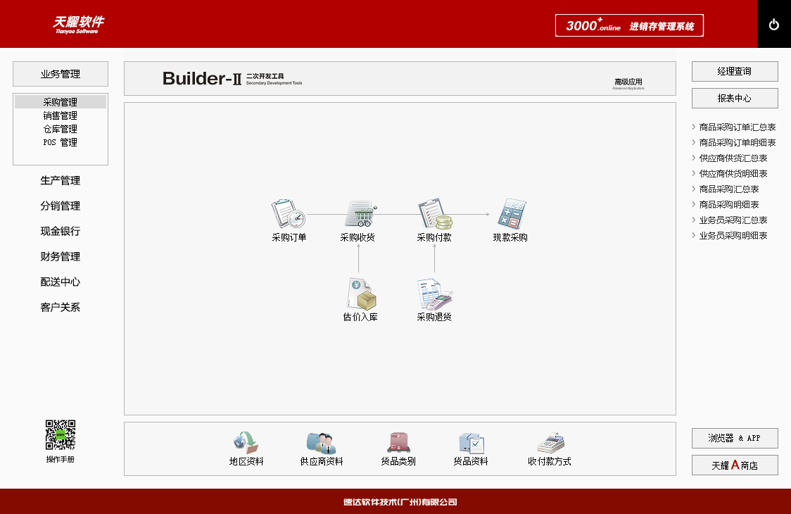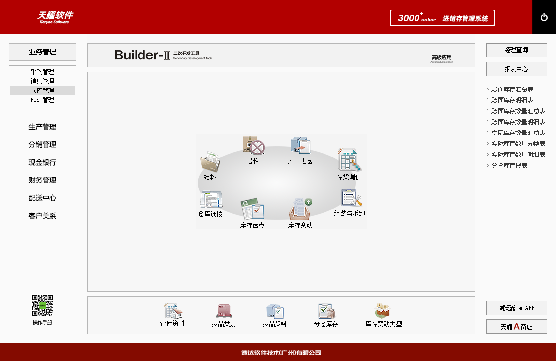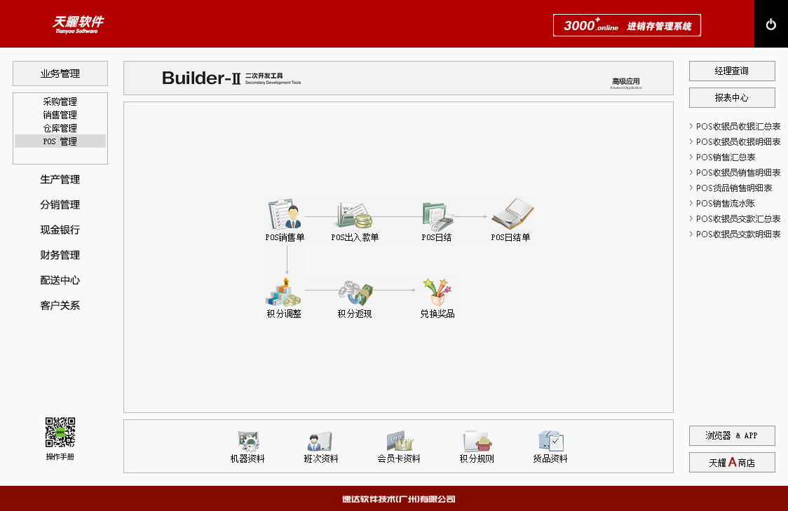 《天耀3000+.online PRO》集進銷存、POS、財務、生產、CRM為一體的中小企業管理軟件。軟件支持云部署和桌面服務器部署及APP部署,并科學地融入Builder-II二次研發工具,滿足企業管理的個性化需求,大大提升了應用效率和安全性。 軟件支持局域網/互聯網多用戶應用,實現異地多機構、多店面、多倉庫等遠程應用,支持APP移動端應用,數據實時同步,安全、穩定、高效、易維護,特別適合中小企業使用。