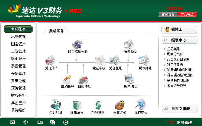支持自動核對出納賬款、支持出 納與會計、銀行對賬。